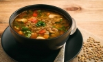 Dodamo lečo in zelenjavno osnovo ter zavremo. Zmanjšamo ogenj in pustimo rahlo vreti 15 minut, da se okusizmešajo. Na koncu dodamo peteršilj.