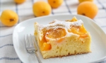 Pečico predgrejemo na 180°C. Marelice operemo in razpolovimo. Pekač velikosti 25×35 cm z visokim robom, obložimo s peki papirjem in vanj vlijemo pripravljeno maso. Po njen razporedimo polovičke marelic.