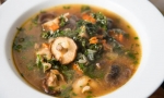 Pripravljeno juho postrežemo in po njej potresemo sveže sesekljane začimbe, kot je peteršilj.