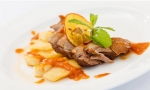 V ponvi segrejemo žlico olja, stroka česna in nekaj vejice timijana. V ponev položimo še medaljone in jih na zmernem ognju popečemo. Dve minuti na vsaki strani bo dovolj, da ostanejo sočni in na sredino rahlo rožnati.
