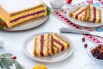 Čez položimo zadnjo plast belega biskvita in ga premažemo s preostalim lešnikovim nadevom.