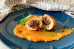 Piščančja rolada s panceto, špinačo in kremo iz sladkega krompirja