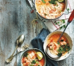 Pikantna juha laksa z rezanci, kozicami in karijem