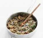 Rižota z gobami, slanino in piščancem