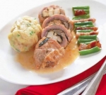 Z mesnih ruladic odstranimo kuhinjsko vrvico in jih z omako serviramo na tople krožnike. Kot prilogo ponudimo kruhove cmoke in stročji fižol, ki smo ga pretresli na popečenih rezinicah slanine.