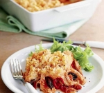 Po vrhu razdelimo krompirjev pire in v pečici pečemo 15 minut, da se pire zapeče.