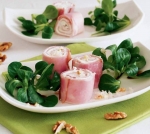 Šunkini zvitki s sirnim namazom, hrenom in orehi