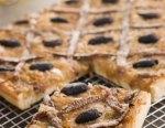 Slanike prerežemo po dolžini, jih položimo na pekač in na njih namažemo maso, ki smo jo naredili prej. Potresemo z začimbami za pico.