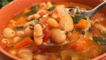 Iz juhe odstranite lovor in vejico rožmarina. Del fižola lahko zmečkate z vilico, če želite gostejšo juho. Lahko pa odvzamete tudi 2 skodelici juhe, jih skupaj s fižolom spasirate s paličnim mešalnikom in nato vrnete v lonec. Mešanico (ali le zmečkan fižol) skupaj s preostalim nezmletim fižolom dodajte v juho in dobro premešajte.