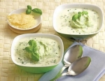 Juho nalijemo v skodelice in v vsako odmerimo žlico smetane. Ponudimo s parmezanovimi krekerji.