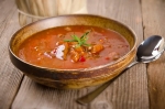 Dodajte miso pasto in vse dobro premešajte. Nato vse skupaj zalijte z zelenjavno jušno osnovo.