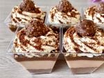 Smetano okrasimo s piškotnimi drobtinami in kroglico Ferrero Rocherja.