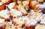 Medtem ko čakate, da se pečica segreje na 180 stopinj Celzija, krompir razporedite po pekaču in mu po želji dodajte še malo parmezana. Krompir položite v pečico za približno eno uro, nato pa odstranite folijo in počakajte od 10 do 15 minut, da se krompir zapeče še na vrhu.