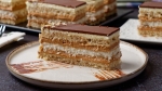 250 g zmehčanega masla ali margarine stepemo kremasto. Vmešamo v ohlajeno kremo. Prvo plast prerežemo na pol in jo položimo v pekač. Prelijemo z malo mleka in pustimo, da se vpije. Enakomerno razporedite kremni čokoladni nadev, na vrh pa dodajte plast naribanega kokosa. Bodite nežni, saj je kokos krhek. Ta postopek ponovite z drugo plastjo.