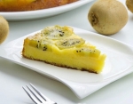 Na dno položimo kivi, čez prelijemo z zmesjo za biskvit in pečemo v predhodno ogreti pečici 20 minut na 200ºC, nato temperaturo znižamo na 150ºC in pečemo še 20 minut, da se po vrhu lepo zapeče.