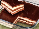 Dodajte drugo plast piškotov in prelijte preostalo kremo. Poravnajte površino.
