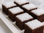 Ko se pecivo malenkost ohladi, pripravimo čokoladni preliv: stopimo čokolado z malo masla in prelijemo po vrhu. Na koncu potresemo s kokosom.
