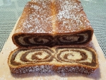 Pečeno potico pustimo še 10 minutv pekaču, nato jo zvrnemo na leseno podlago, pokrijemo in pustimo, da se ohladi. Posujemo s sladkorjem v prahu. Režemo ohlajeno.