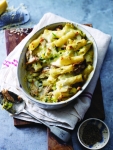 Zapečenec z makaroni, porom in skušo