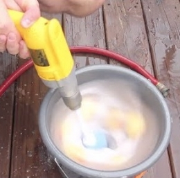 Ščetki odrežemo ročaj in jo vstavimo v vrtalnik, nato pa ta nastavek za lupljenje vtaknemo v vedro vode s krompirjem. Poglejte video in prihodnja sezona piknikov bo zagotovo bolj zabavna!
