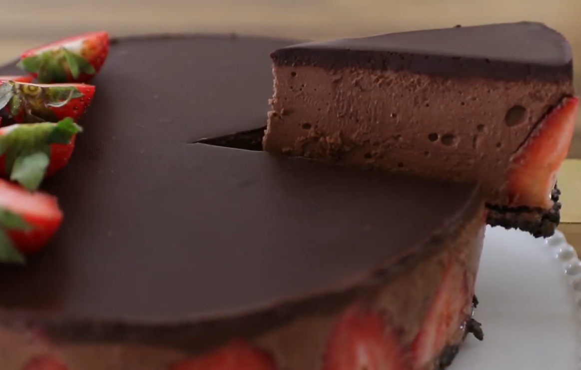 KUHAJMO.COM VIDEO | Čokoladno-jagodna sirna torta brez peke ...