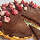 Skutna torta za jagodami in čokoladnim biskvitom – brez glutena