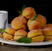 Obloženi kruhki s kozjim sirom, hruškami in orehi