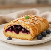 Štrudelj z borovnicami in vanilijevim pudingom