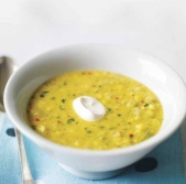 Juha iz sladkega krompirja s popečenimi česnovimi kruhki