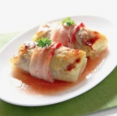 Zeljne ruladice v slaninskem ovoju