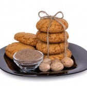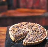 Kolač iz bučk in ameriških orehov z javorovim prelivom