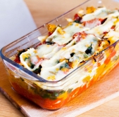 Pečene testenine z bučo in špinačo