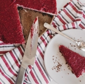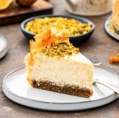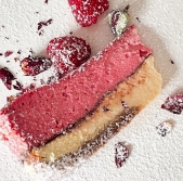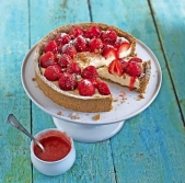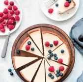 Limonov cheesecake s pečenimi slivami in robidnicami