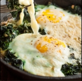 Pečen krompir s špinačo in jajcem na oko