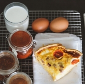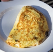 Jajca v koruzni tortilji s slanino, paradižnikom, čebulo in sirom (Burrito)