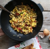 Umešana jajca z bučkami in papriko