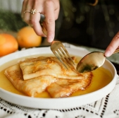 Gratinirane palačinke z dušenimi jabolki in skuto