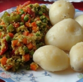 Kuhan krompir s kuskus soparjeno zelenjavo