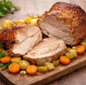 Pečena svinjska vratovina v marinadi z zelenjavo
