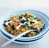 Pikantna juha laksa z rezanci, kozicami in karijem