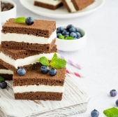 Bela čokoladna rezina s kremnim sirom in jagodičjem